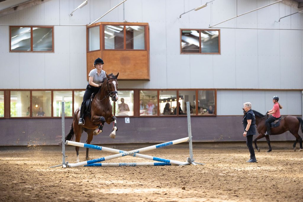 Voor onze manegeruiters organiseren we met regelmaat springlessen. In de binnenbak zetten we een parcours neer om je extra uit te dagen. De lessen zijn in groepen van maximaal 6 personen.